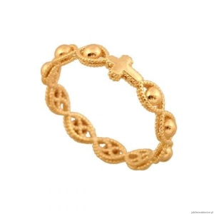 Różaniec w formie ozdobnej falbanki, kuleczek i krzyżyka.