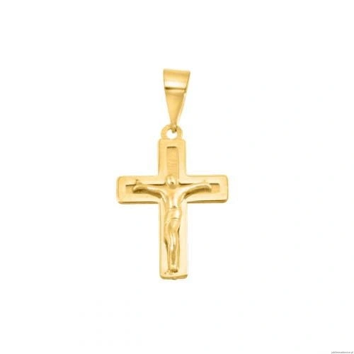 Krzyżyk z wizerunkiem Chrystusa, zdobiony dodatkiem matu.