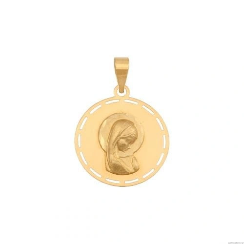 Medalik o nowoczesnej formie z wizerunkiem Matki Boskiej.Tył pełny.