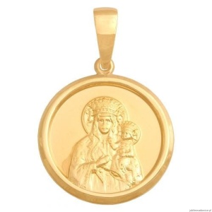 Duży,okrągły medalik z wizerunkiem Matki Boskiej Częstochowskiej.Tył pełny.