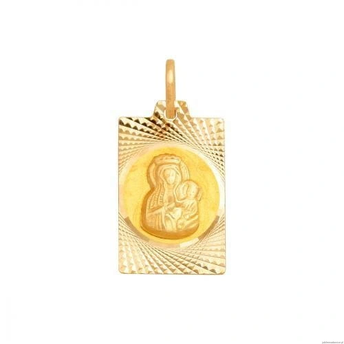 Prostokątny medalik z wizerunkiem Matki Boskiej Częstochowskiej. Tył pełny.