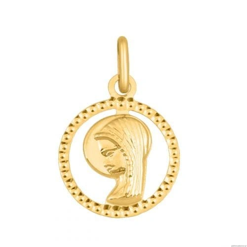 Medalik z Maryją w okrągłej ramce. Zdobione grawerem.