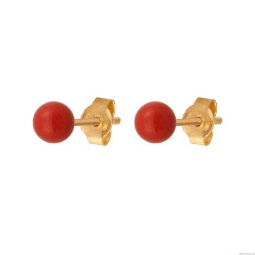 Kolczyki kulki z naturalnym koralem.