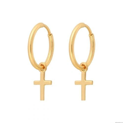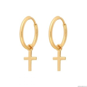 Bardzo modne kolczyki kółka z wiszącym krzyżykiem.