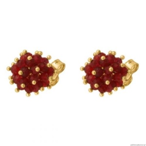 Kolczyki "maczugi" z kamieniami w kolorze rubinu.
