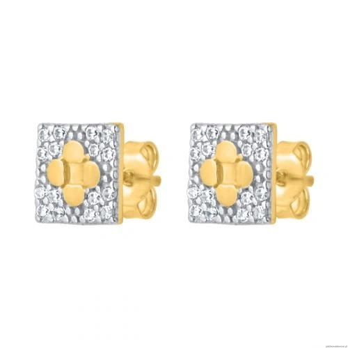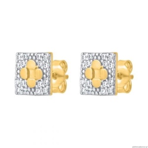 Kolczyki kwadraty zdobione kwiatuszkiem i cyrkoniami.