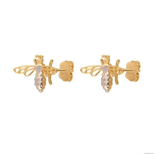 Nowoczesne kolczyki w kształcie pszczoły. Połączenie żółtego i białego złota.