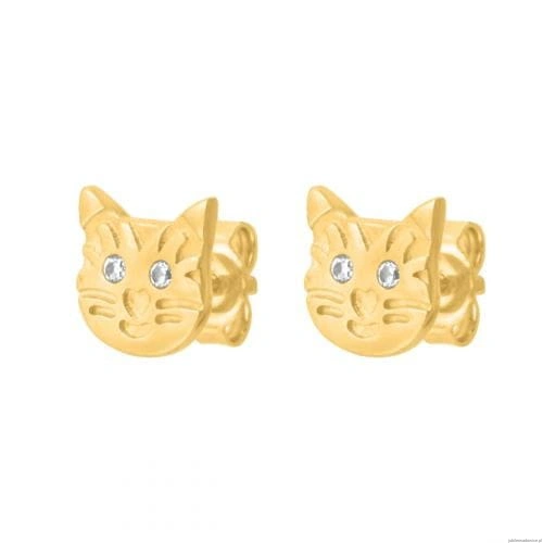 Kolczyki w kształcie głowy kotka zdobione cyrkoniami.