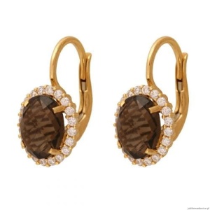 Kolczyki z jasnobrązowym kamieniem otoczony białymi zirkoniami
