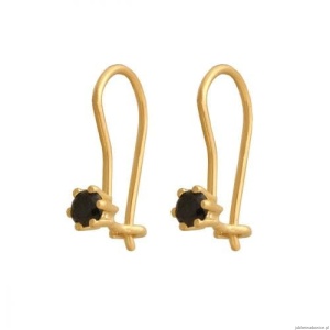 Delikatne kolczyki z czarnym kamieniem oprawionym w złoty koszyczek.