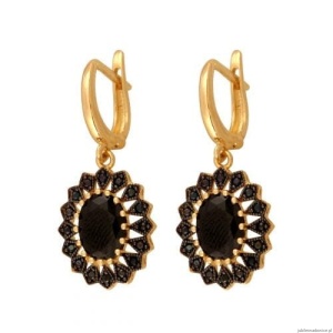 Wiszące kolczyki w wiktoriańskim stylu z czarnymi kamieniami.