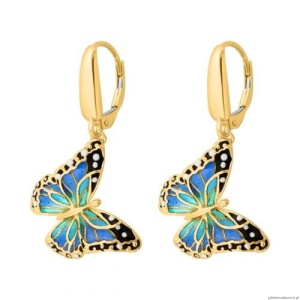 Kolczyki z wiszącymi emaliowymi motylami.