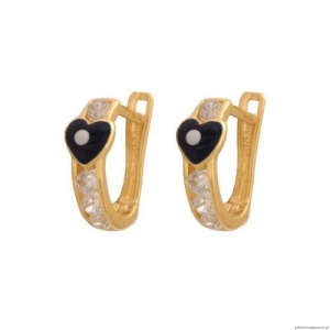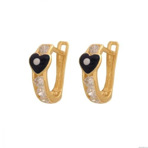 Kolczyki z cyrkoniami i emaliowanym serduszkiem w kolorze ciemnego granat brak kropki białej.