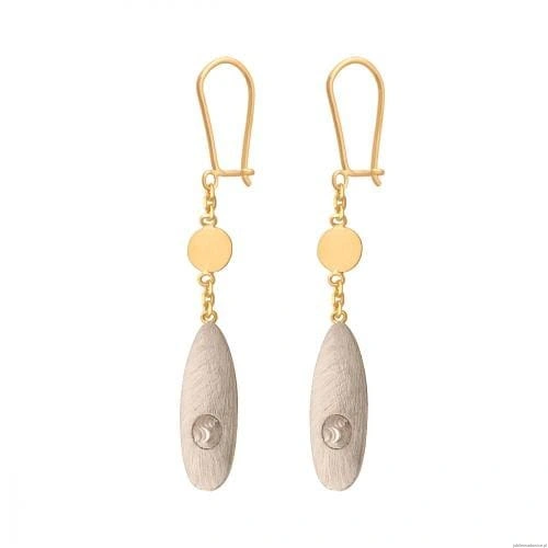 Kolczyki w formie blaszki, zdobionej matem, na zapięciu w stylu klipsa.