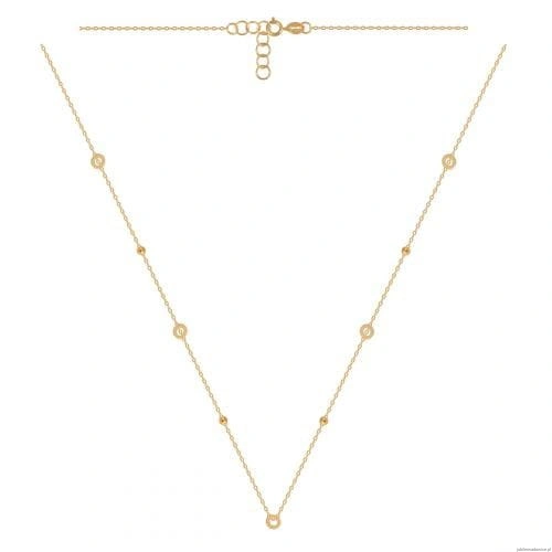 Modny naszyjnik o ankrowym splocie z przewleczonymi kuleczkami i kółeczkami.Możliwość regulacji do 42cm.