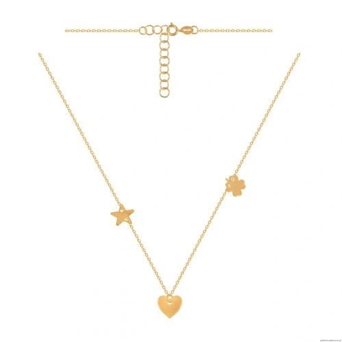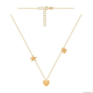 Modny naszyjnik o ankrowym splocie z serduszkiem,koniczynką i gwiazdką.Noszony przez gwiazdy.Możliwość regulacji do 42cm.