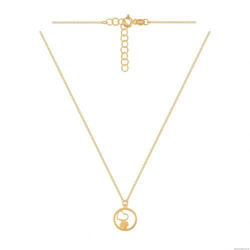 Delikatny naszyjnik "celebrytka" z serduszkiem i koniczynką oprawione w okrągłą ramkę. Możliwość regulacji długości do 42cm.