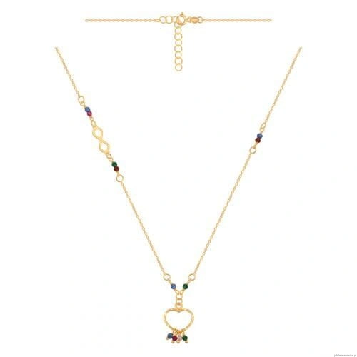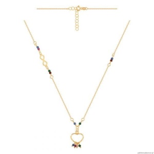 Modny naszyjnik z serduszkiem i nieskończonością ozdobiony kolorowymi koralikami. Regulacja do 43cm.