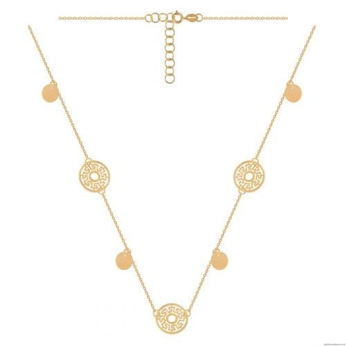 Ankrowy naszyjnik z blaszkami. Większe z greckim wzorem. Możliwość regulacji do 42 cm.
