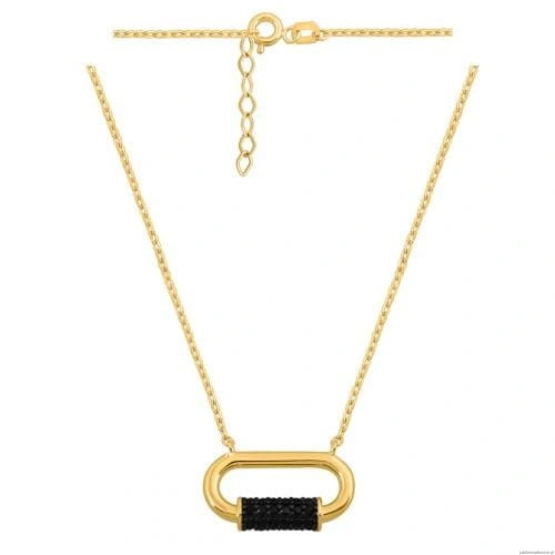 Ankrowy naszyjnik z modnym elementem zdobionym czarnymi kamieniami. Regulacja do 43 cm.