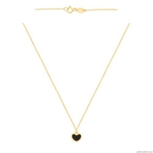 łańcuszkowy naszyjnik -z wisiorkiem wyprełnionym czarną emalią , długość 42/45 cm