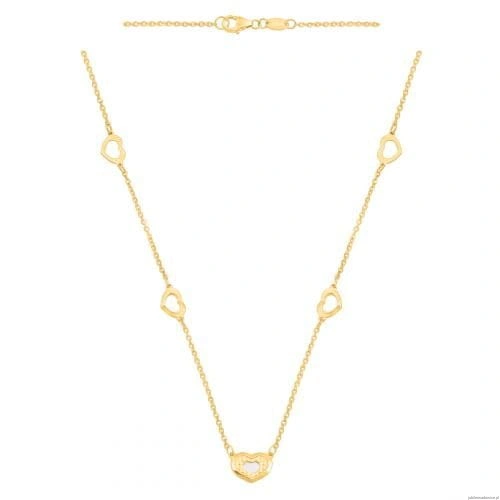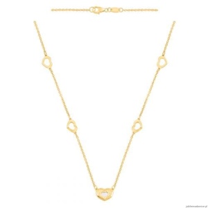Łańcuszkowy naszyjnik z 5 elementami- serduszka z głównym elementem wypełnionym masą perłową, długość 46/43cm.