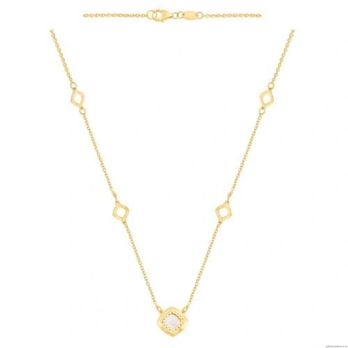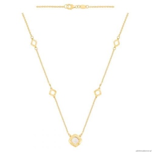 Łańcuszkowy naszyjnik z 5 elementami- z głównym elementem wypełnionym masa perłową, długość 46/43cm