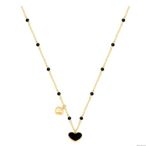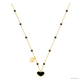 łańcuszkowy naszyjnik anker z czarnym serduszkiem -emalią oraz czarnymi kamyczkami