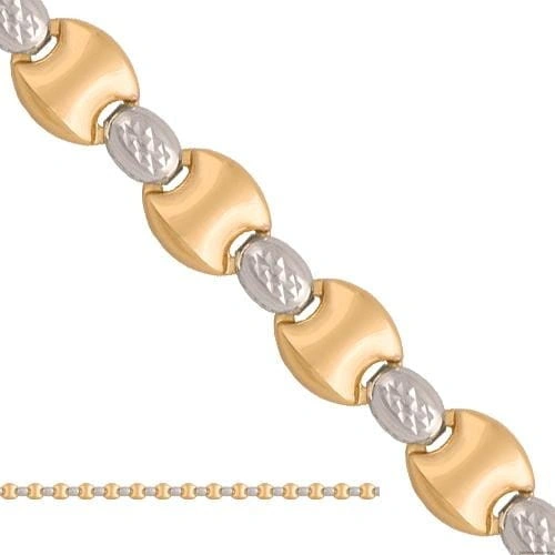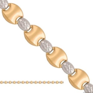 Naszyjnik z połączonych elementów w żółtym i białym kolorze złota.Tył wklęsły.