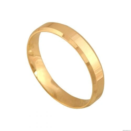 Złota obrączka płaska o ściętych krawędziach. Wykonana w najnowszej technologii bez lutowania i soczewkowym środku. Jedna z najlepiej sprzedających się obrączek. Możliwość wygrawerowania