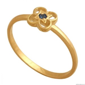 Pierścionek w kształcie kwiatuszka z kamieniem w kolorze szafiru.