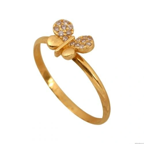 Pierścionek z motylkiem zdobionym cyrkoniami.
