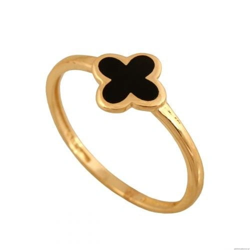 Pierścionek z koniczynką z czarną emalią.