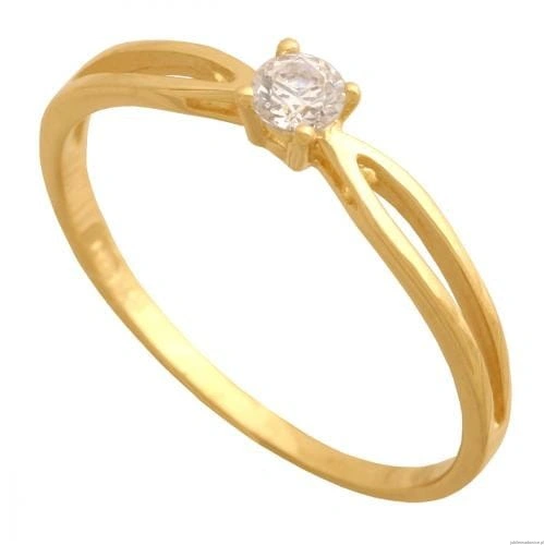 Pierścionek z cyrkonią umieszczoną w czterech łapkach.