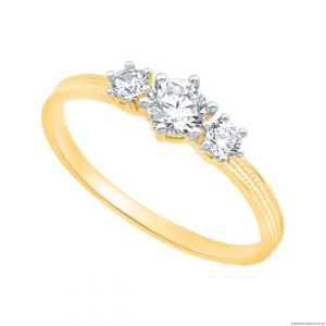 Pierścionek z cyrkoniami i fantazyjnie matowo zdobioną obrączką.