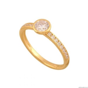 Pierścionek z cyrkoniami w obrączce i dużą centralną cyrkonią w rameczce o średnicy 5,90mm.