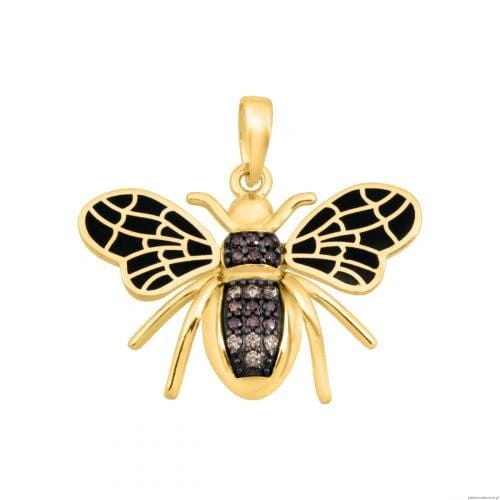 Zawieszka w formie muchy. Zdobiona czarną emalią i kamieniami w kolorze granatu.