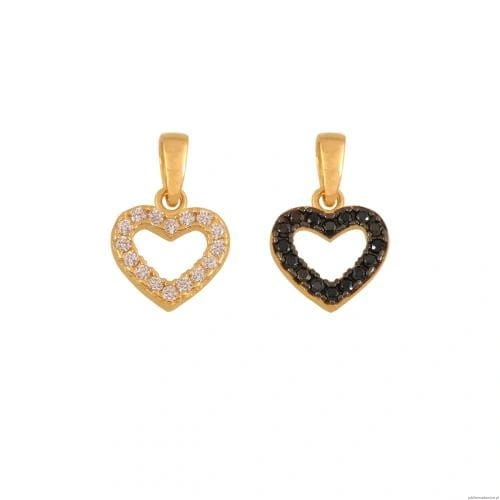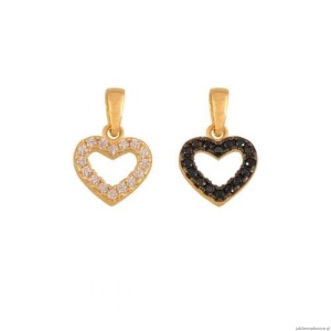 Serduszko z jednej strony cyrkonie, z drugiej czarne kamienie.