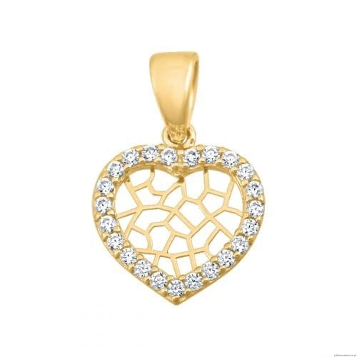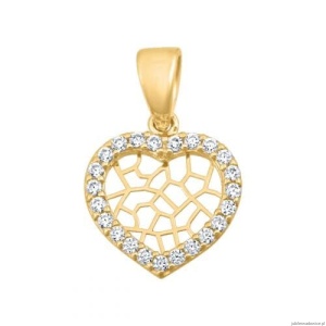 Serduszko z ramki wysadzanej cyrkoniami, wewnątrz ozdobna krateczka.