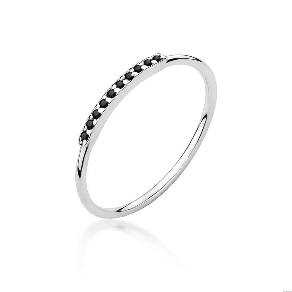 Pierścionek W0509 z czarnymi Diamentami białe złoto 375