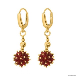 Kolczyki "maczugi" z kamieniami w kolorze rubinu.