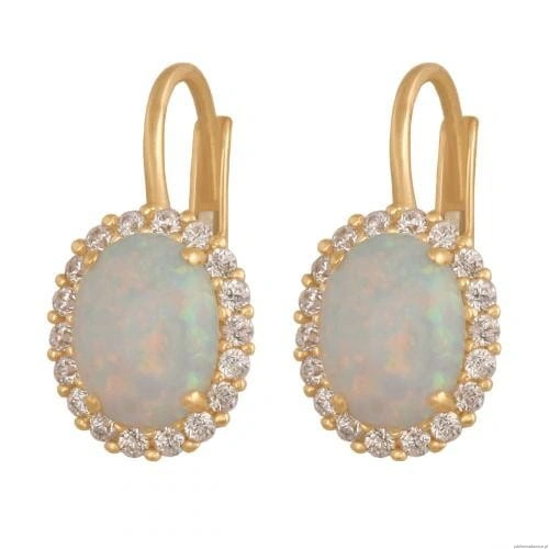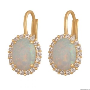 Kolczyki z owalnym opalem,otoczonym wianuszkiem cyrkonii.Wymiary element szer. i wys. dotyczą centralnego kamienia.
