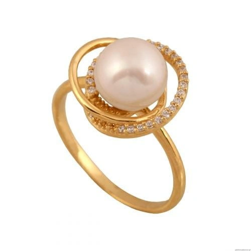 Pierścionek z finezyjnie oprawioną perłą i cyrkoniami.