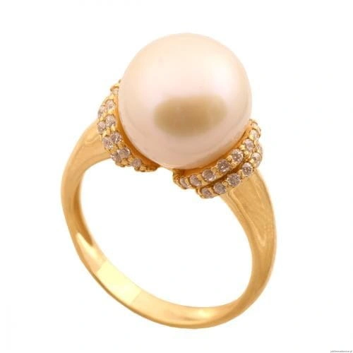 Pierścionek z dużą,centralną perłą,otoczoną z dwóch stron cyrkoniami.Średnica perły 11,6mm.