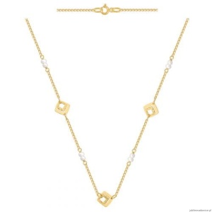 Łańcuszkowa bransoletka pancerka, zdobiona blaszkowymi elementami i syntetycznymi perełkami.