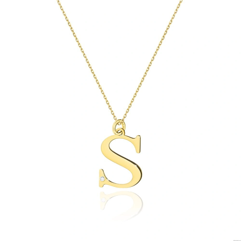 Naszyjnik N0070 z diamentami - litery S - żółte złoto